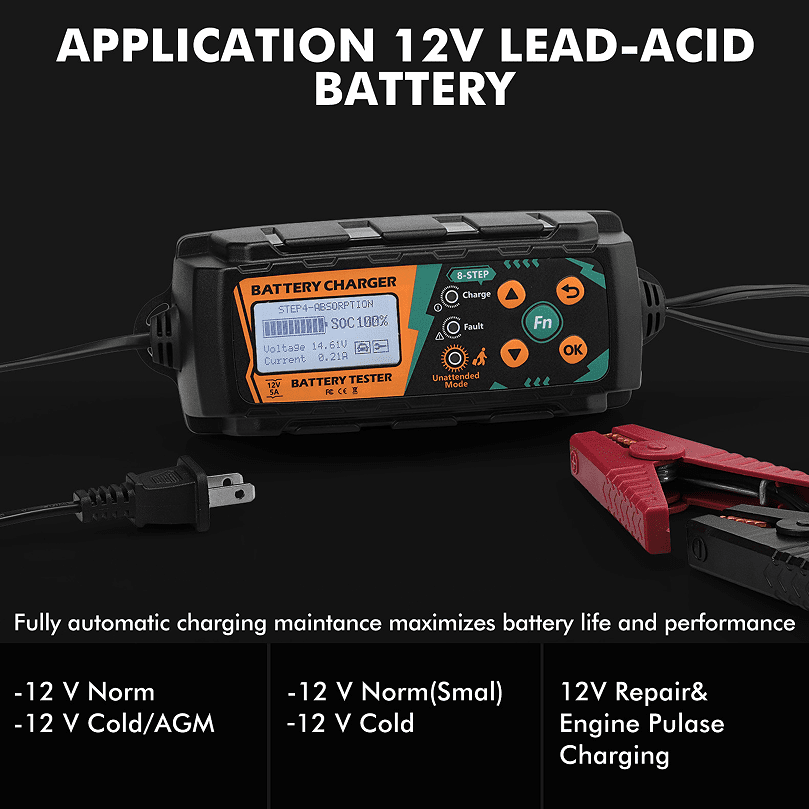 Built-in compensation function to provide unmatched performance on 1.2Ah to 160Ah lead-acid batteries.