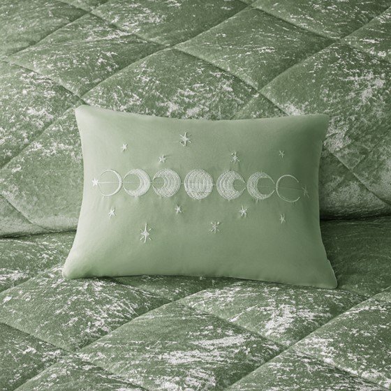 Comforter/sham: 100% polyester crushed velvet fabric quilting on face, 100% polyester microfiber reverse; sham has narrow flange and overlap opening at back; comforter has polyester fillPillow: 100% polyester cover with embroidery on face, polyester fill