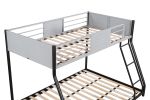 This twin-over-full bunk bed is built to last! The frame is constructed from high-grade, resilient metal for years of worry-free use. Unlike traditional metal bed frames, this one utilizes a silent, solid wood slat system that eliminates creaking and groaning to ensure an undisturbed sleep experience. The precisely designed wooden slats also provide optimal support for your mattress, preventing slipping and promoting airflow for enhanced comfort and longevity.Safety is a top priority with this bunk bed. Full-length guardrails on the top bunk ensure security, and the built-in ladder provides safe and easy access. This bed meets rigorous Children's Product Certificate (CPC) standards, so you can rest easy knowing your child is safe and secure. The low-profile design maximizes sleeping space and even features a full-length guardrail with a ventilation panel on the top bunk, offering privacy without compromising airflow.