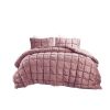 Comforter/Sham: 100% polyester velvet, washed microfiber reverse, 100% polyester down alternative fill, box quilting front, jump tack back