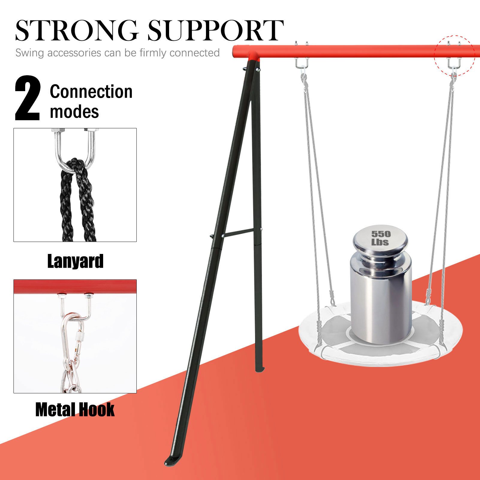 1.•[Higher Capacity]-Our swing stand frame is designed with high strength steel ensuring that it offers high stability, safety, and robustness, the swing stand outdoor can hold up to 880 lbs,allowing you to sway in peace